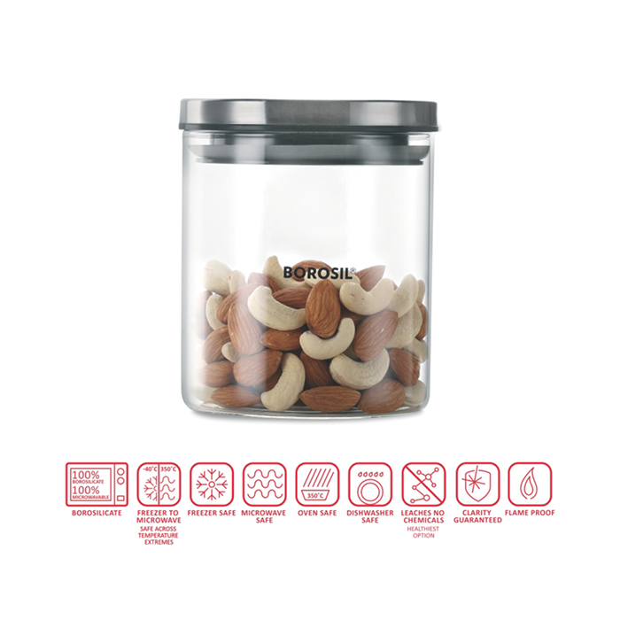 Be the first to review “Borosil Classic Jar With Steel Lid 600Ml”
